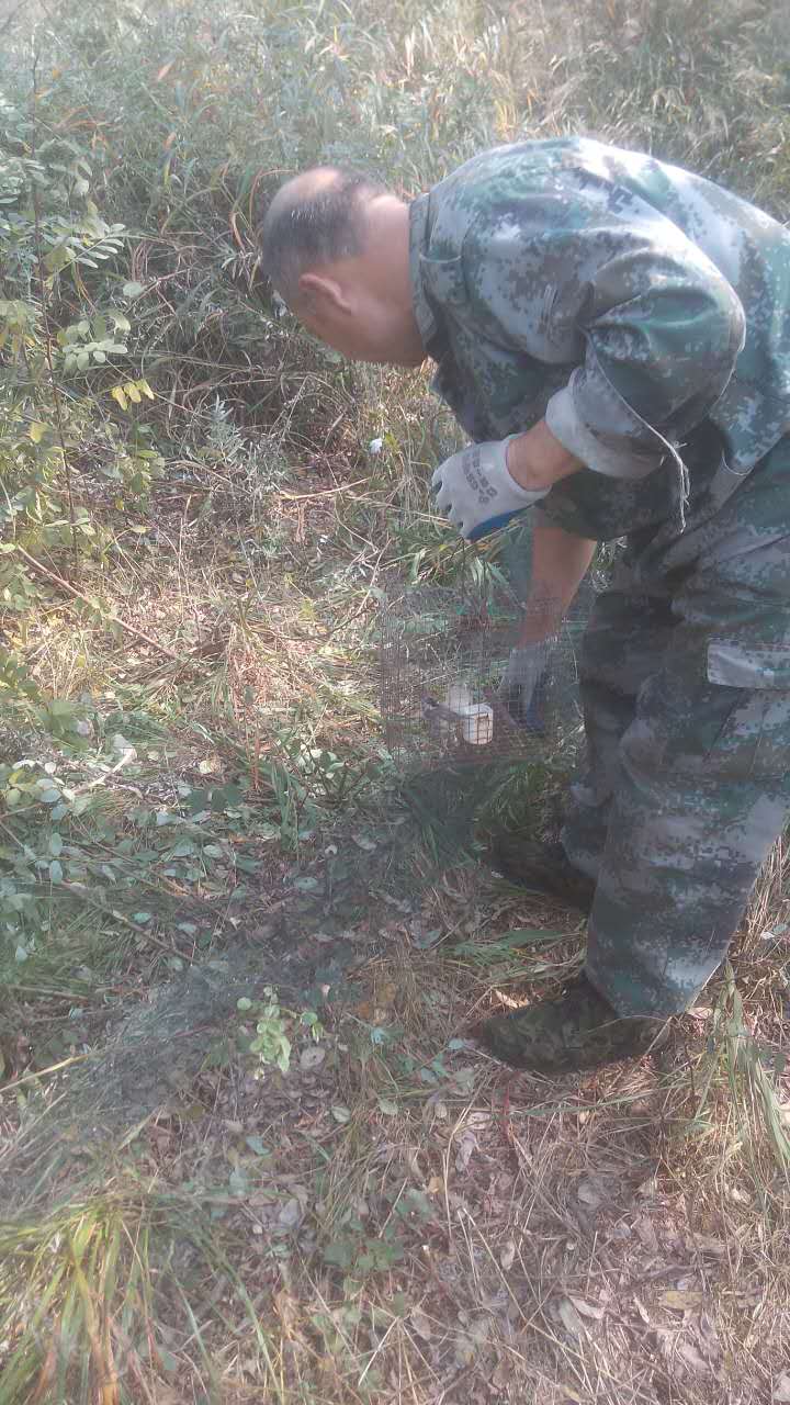 2016年10月4日,在国庆假日里,我场职工按照提前制定好的节假日巡山方案,加强巡山护林防火工作。在林场场长带领下,深入沟谷,排查隐患。发现偷捕鸟类的捕鸟网,当下立即收缴,将已经被捕的鸟类放生。